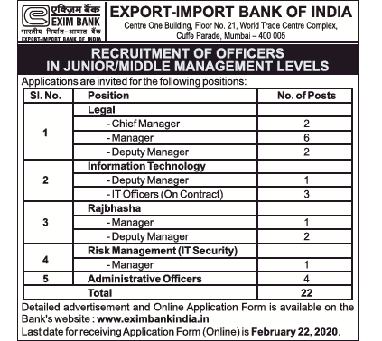 Legal Job Posts@ EXIM Bank, Mumbai : Apply by February 2